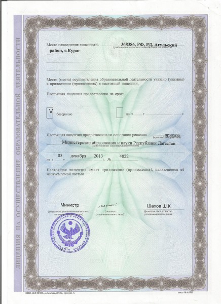 | Адрес местонахождения образовательной организации* | 368386,с.РД,Агульский район,с.Кураг |